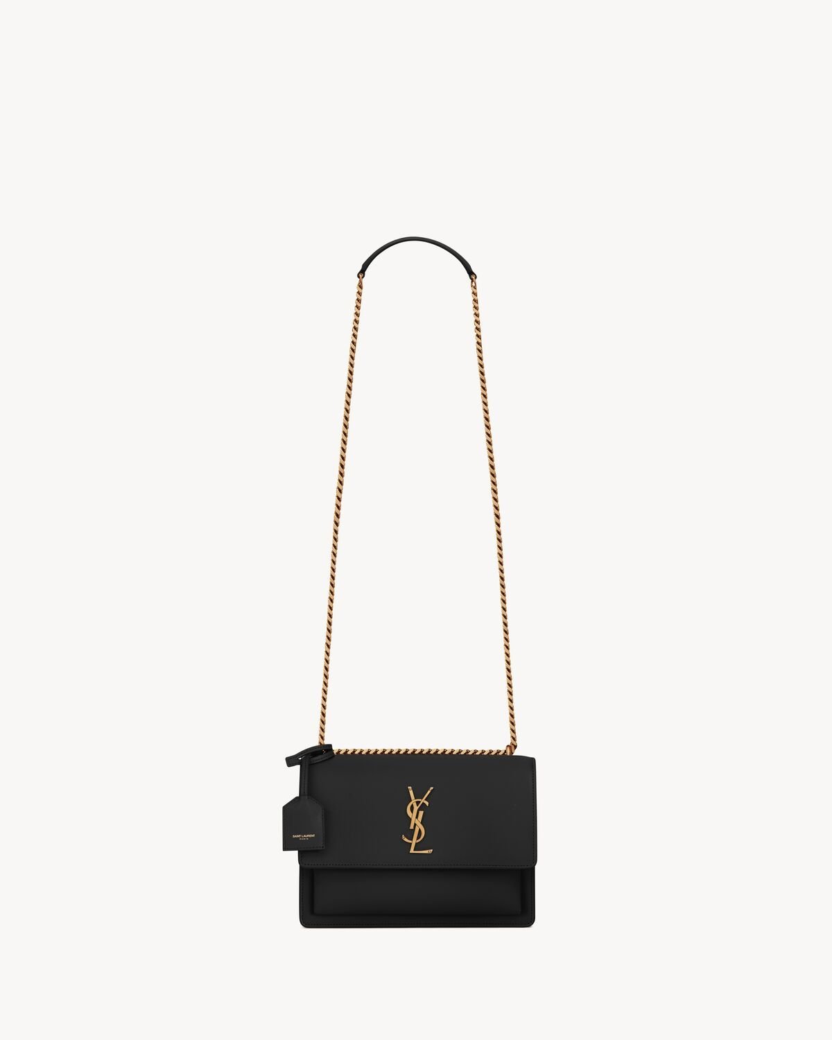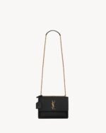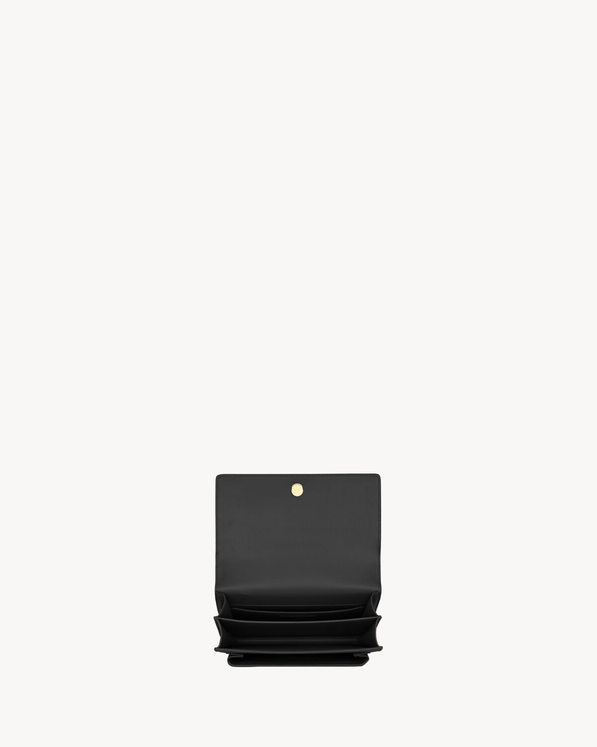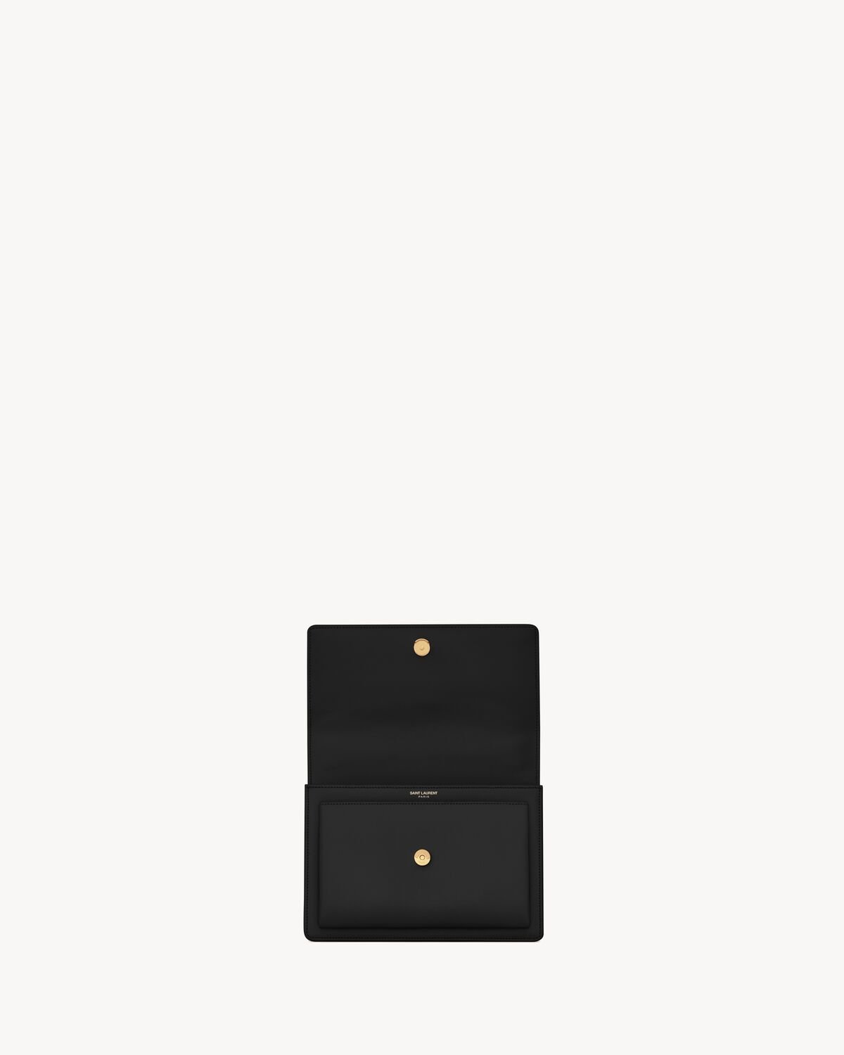 LEATHER-LINED FLAP BAG WITH THE CASSANDRE AND DETACHABLE LEATHER CHARM.